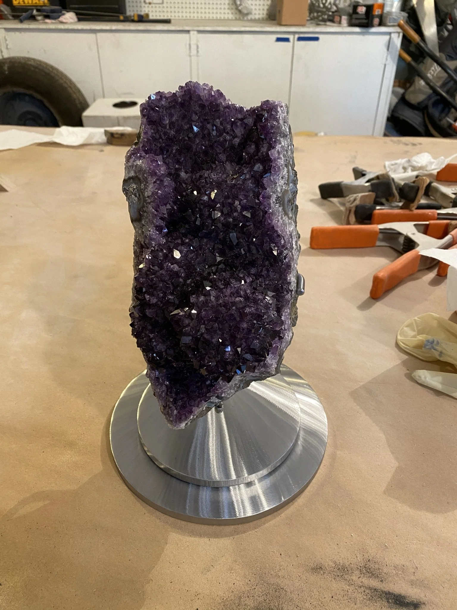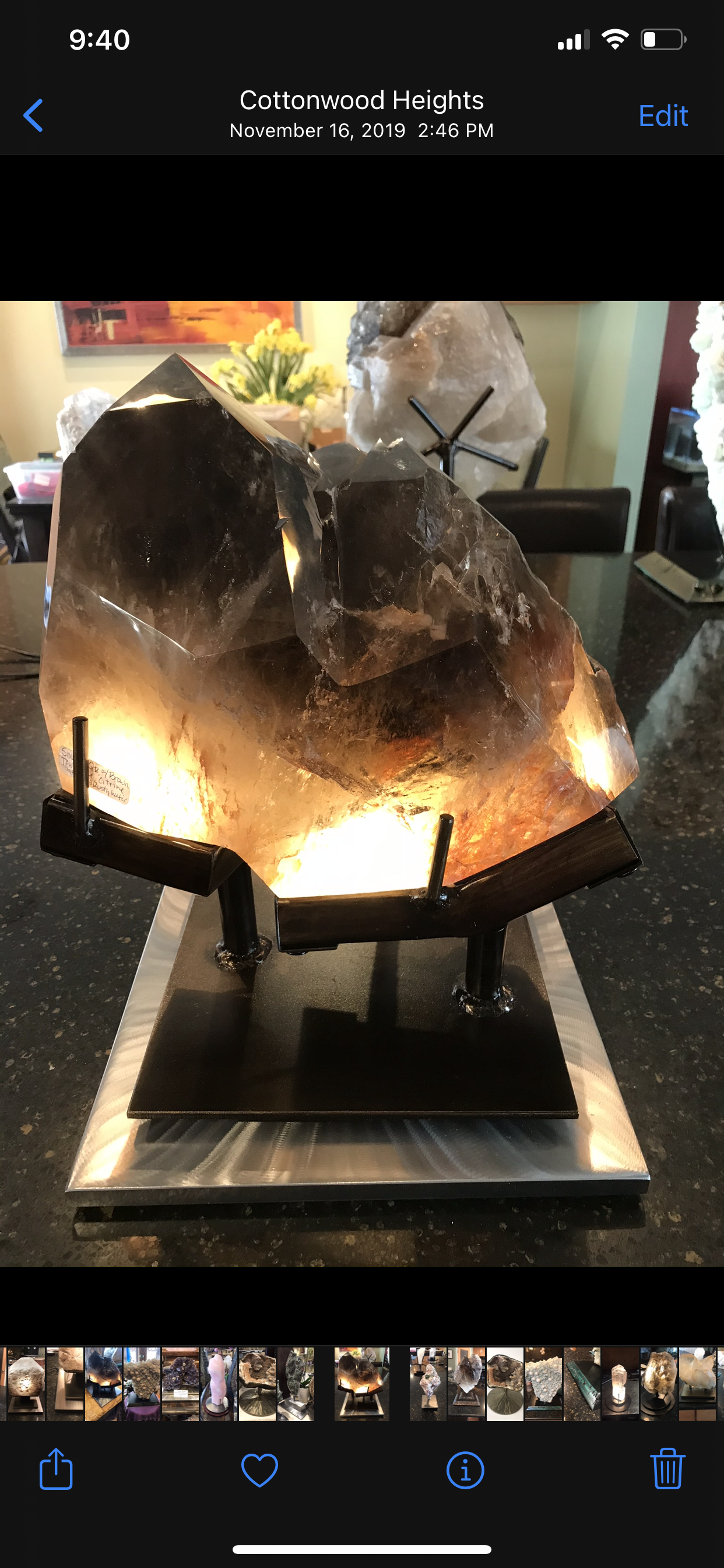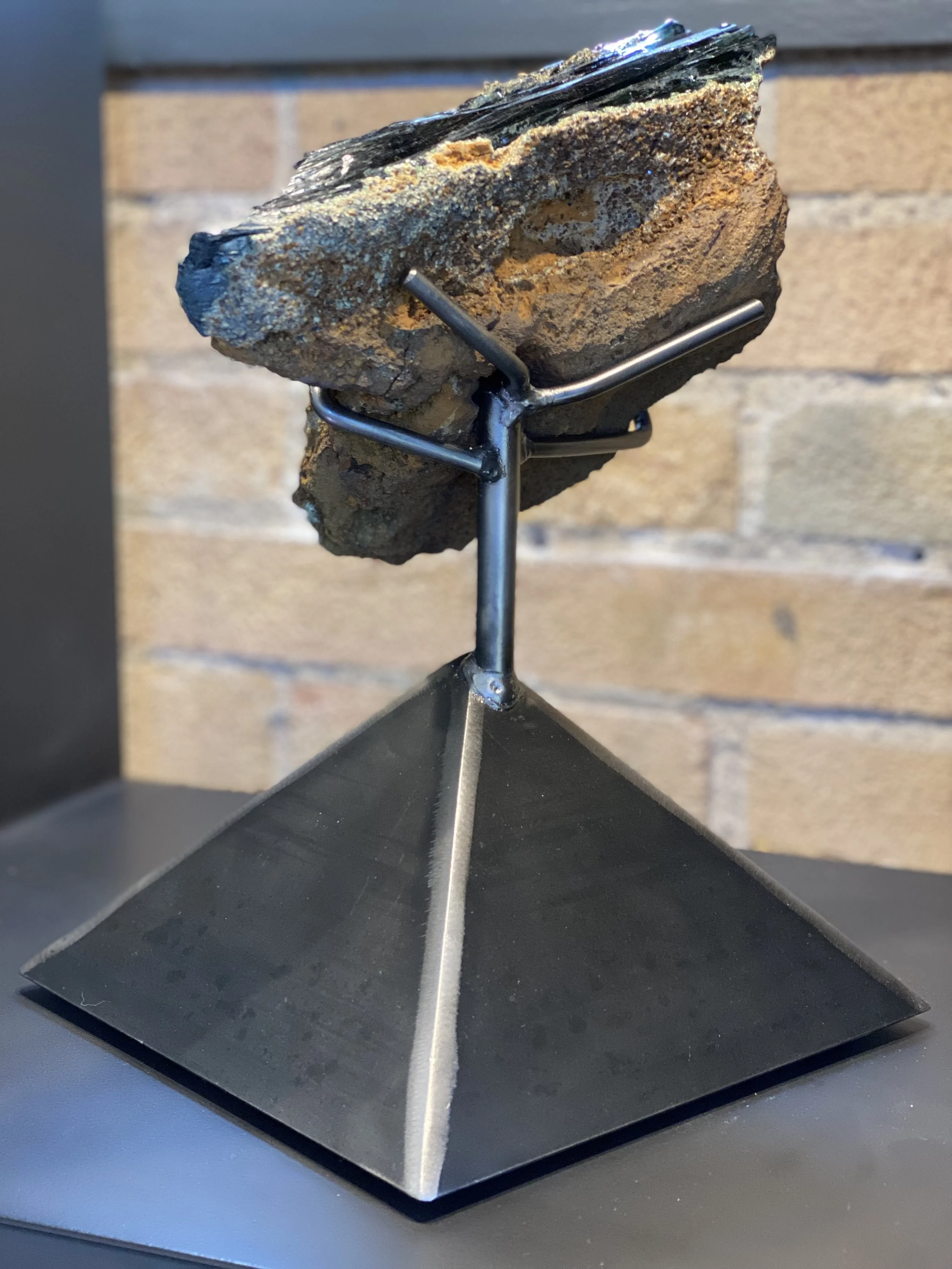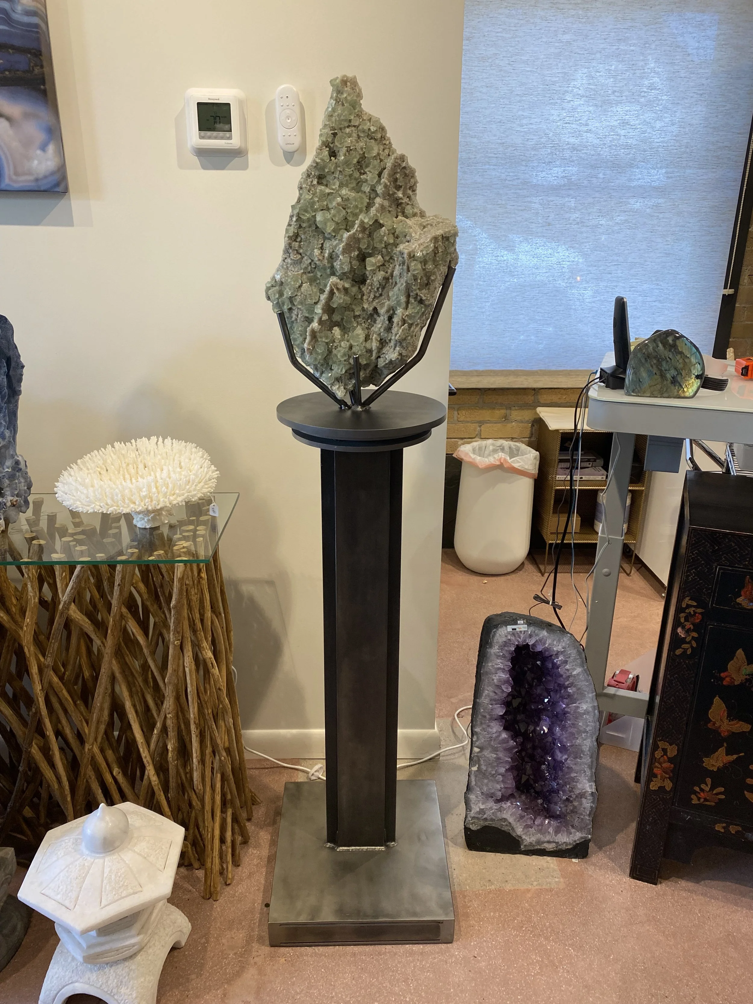 I specialize in custom designing stands. Whether it is a crystal, gemstone, collector item, or a treasure brought back from your travels, I can craft a stand that will enhance the beauty of the piece, turning it into a work of art. Stands come floor, table or wall mounted, can swivel if need be, and are designed to meet your specifications. Custom lighting can be integrated into the stand to further showcase the item.