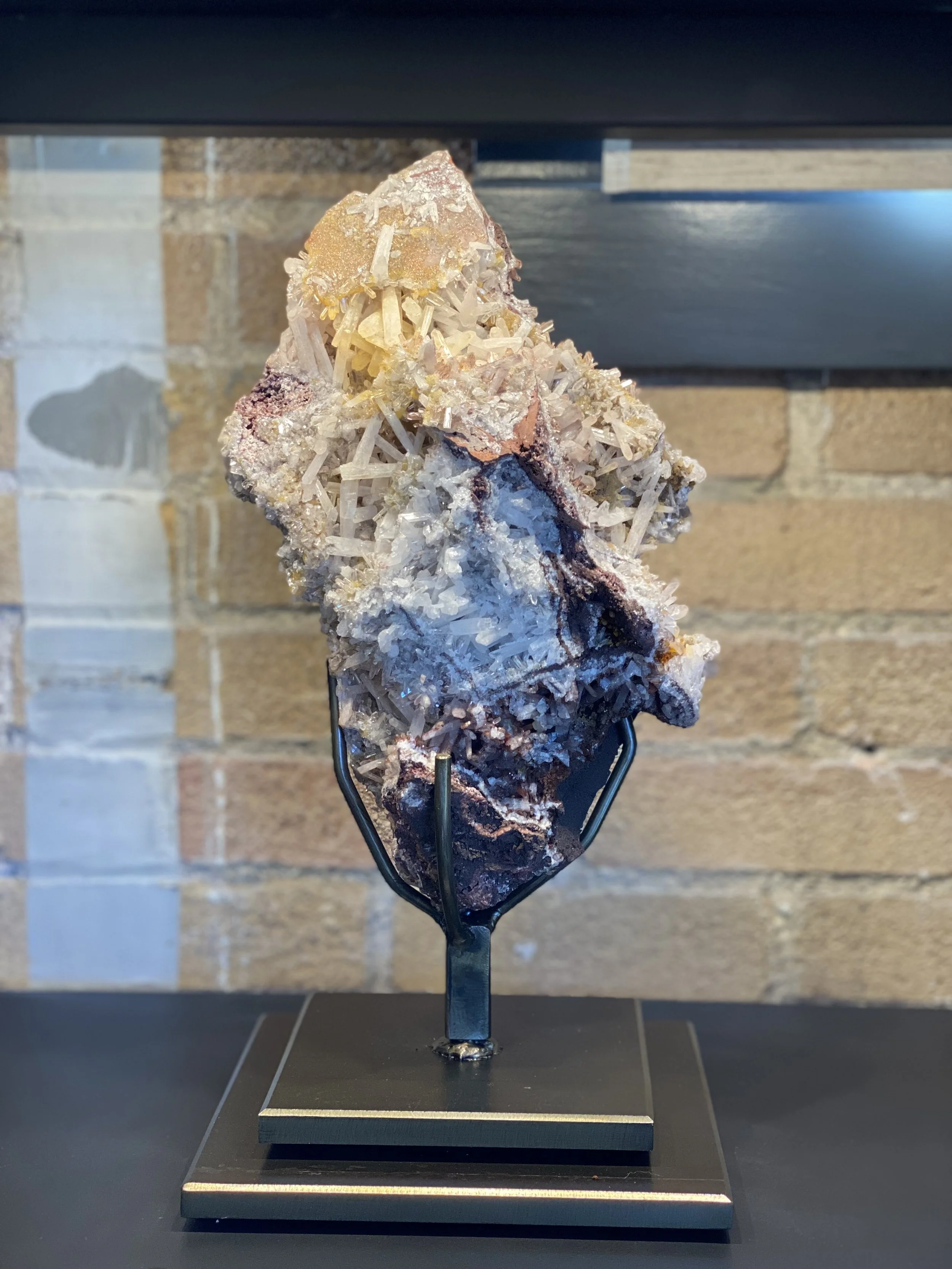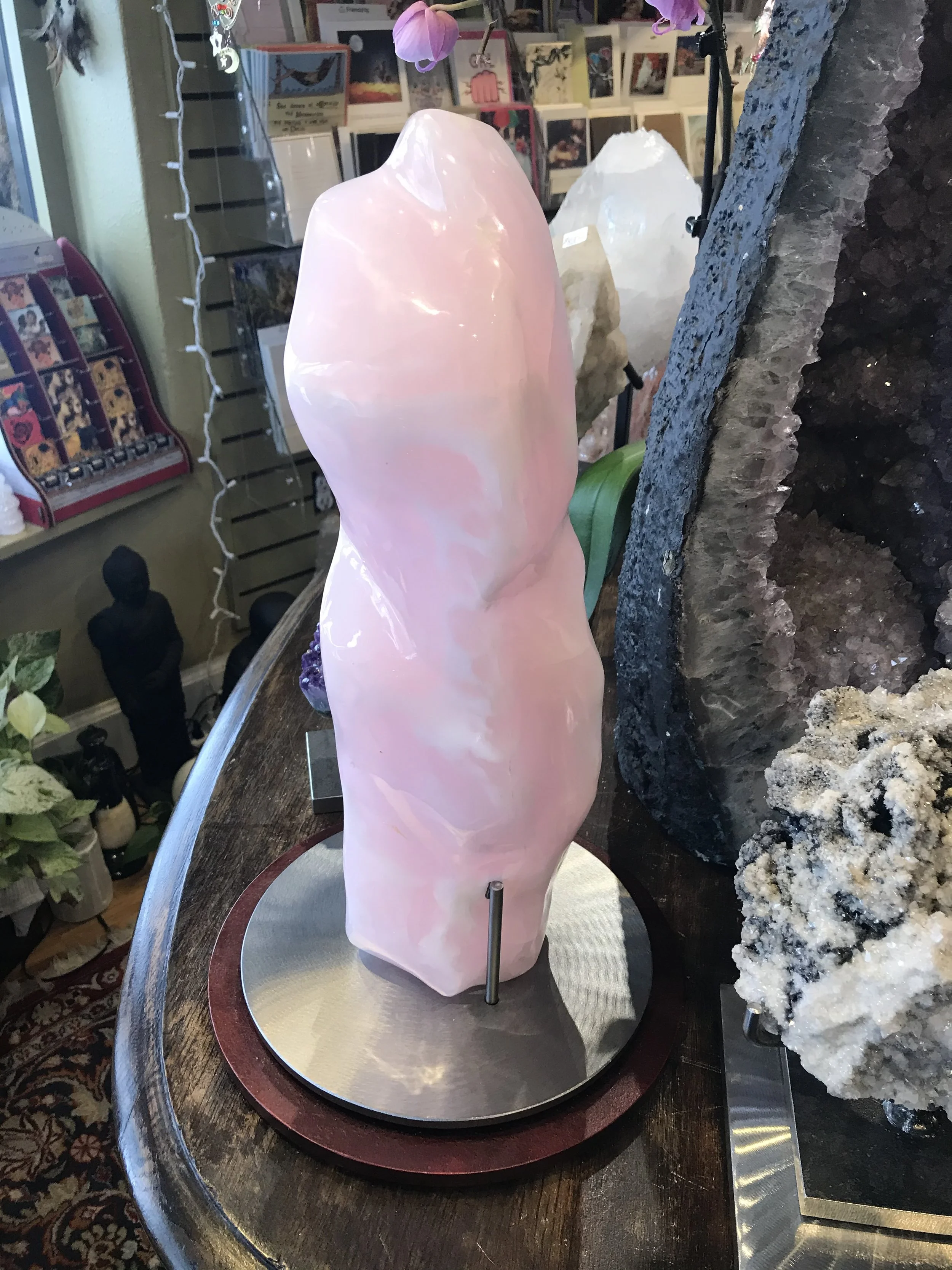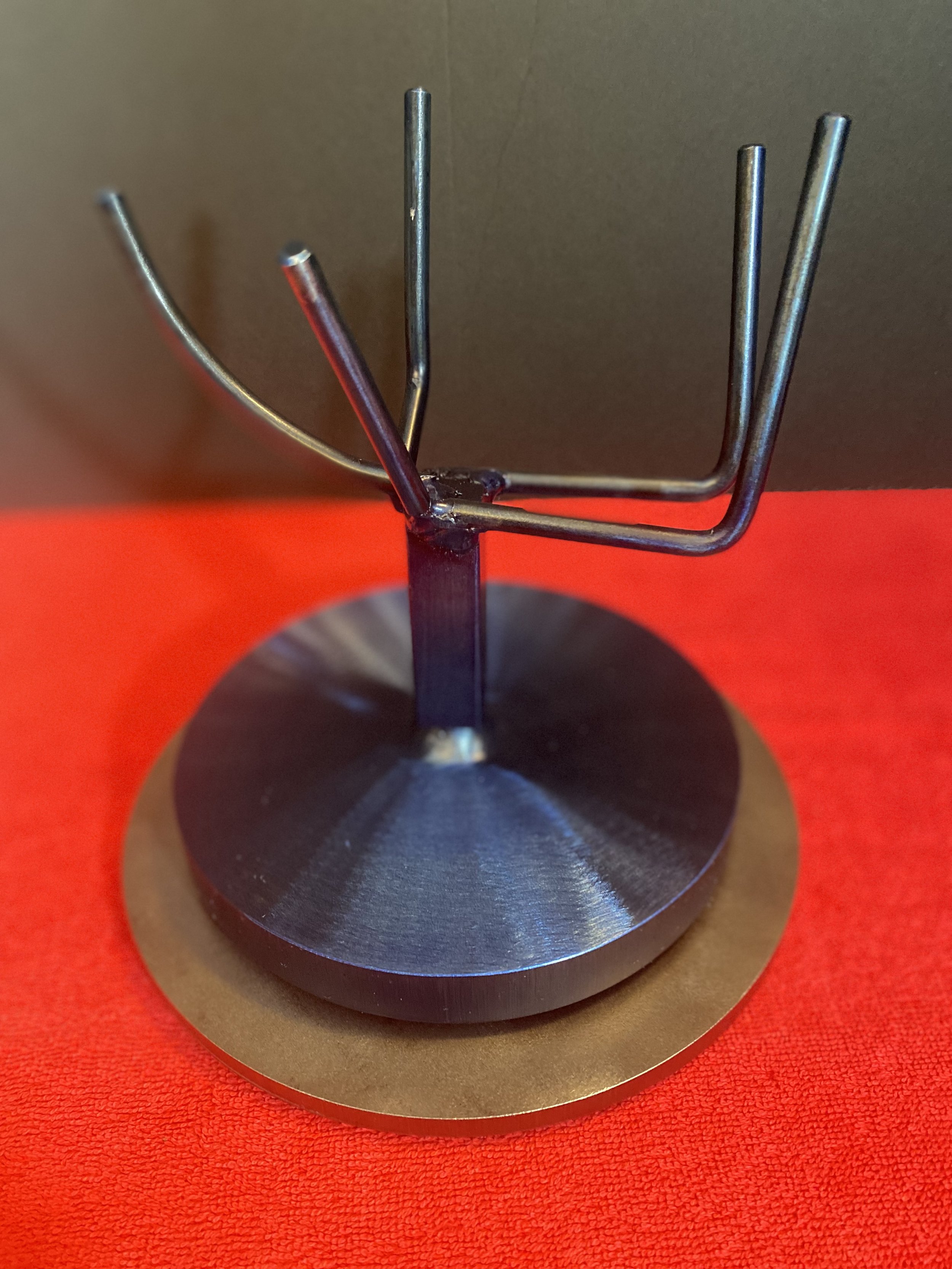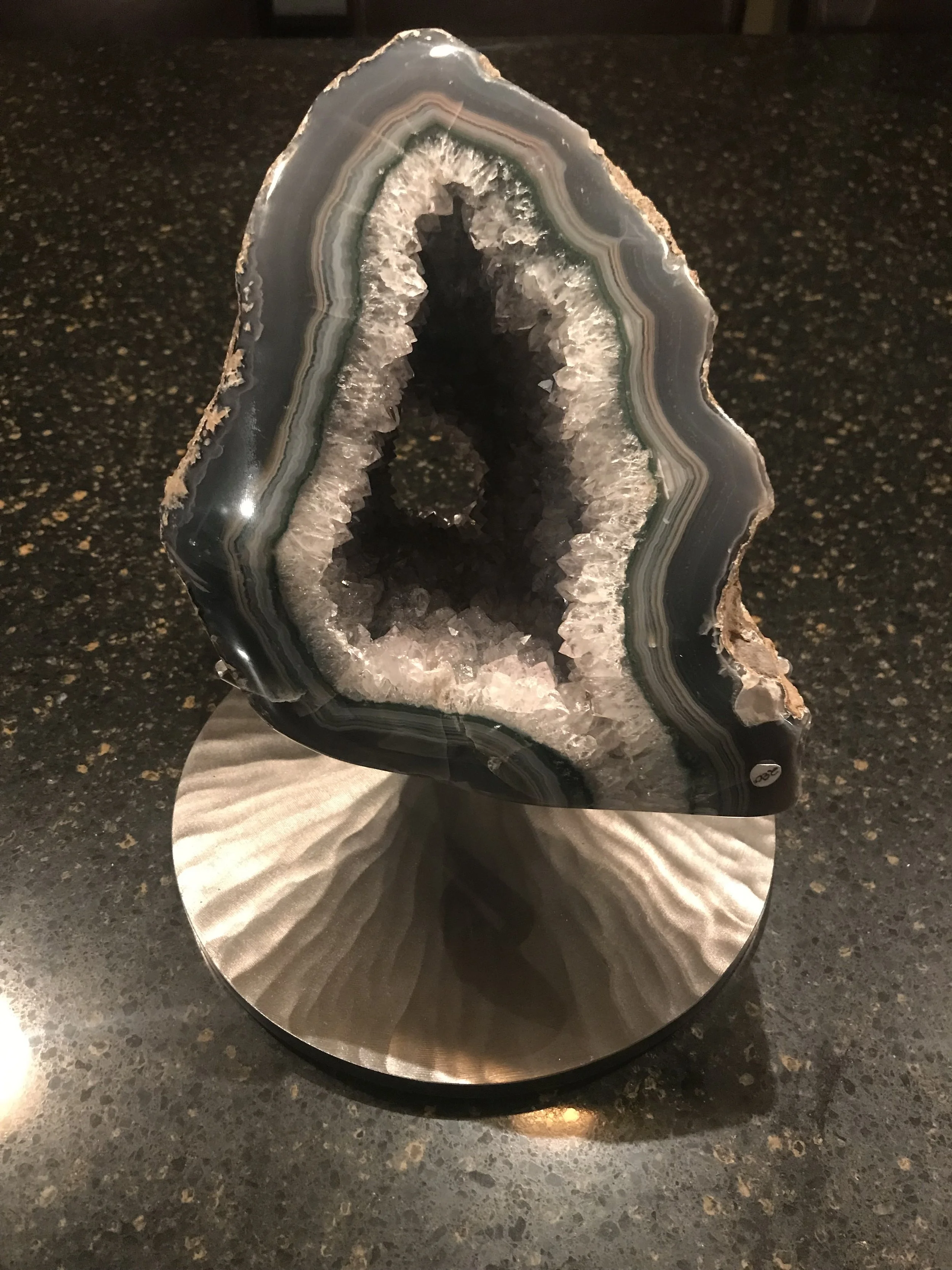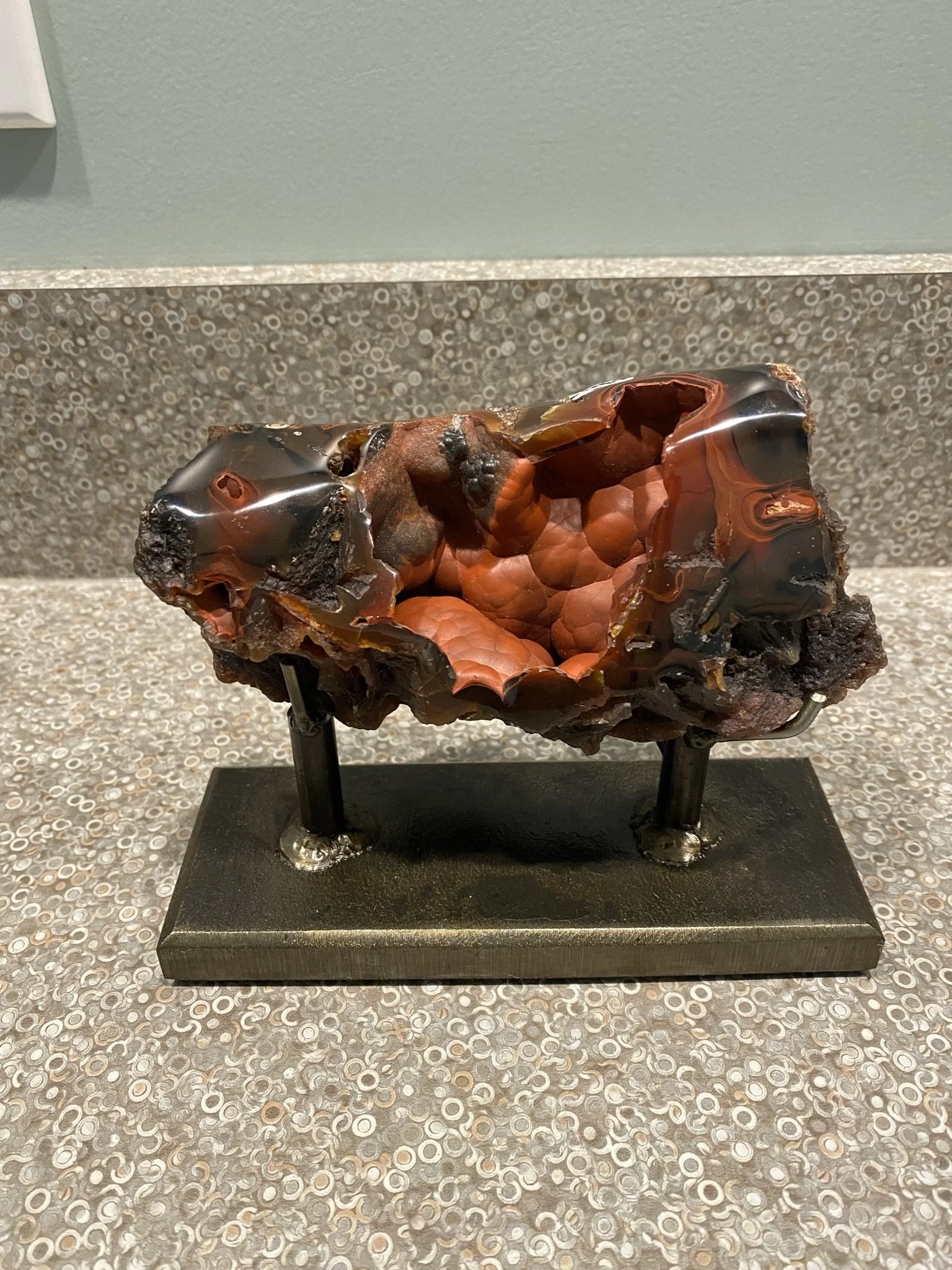 I specialize in custom designing stands. Whether it is a crystal, gemstone, collector item, or a treasure brought back from your travels, I can craft a stand that will enhance the beauty of the piece, turning it into a work of art. Stands come floor, table or wall mounted, can swivel if need be, and are designed to meet your specifications. Custom lighting can be integrated into the stand to further showcase the item.