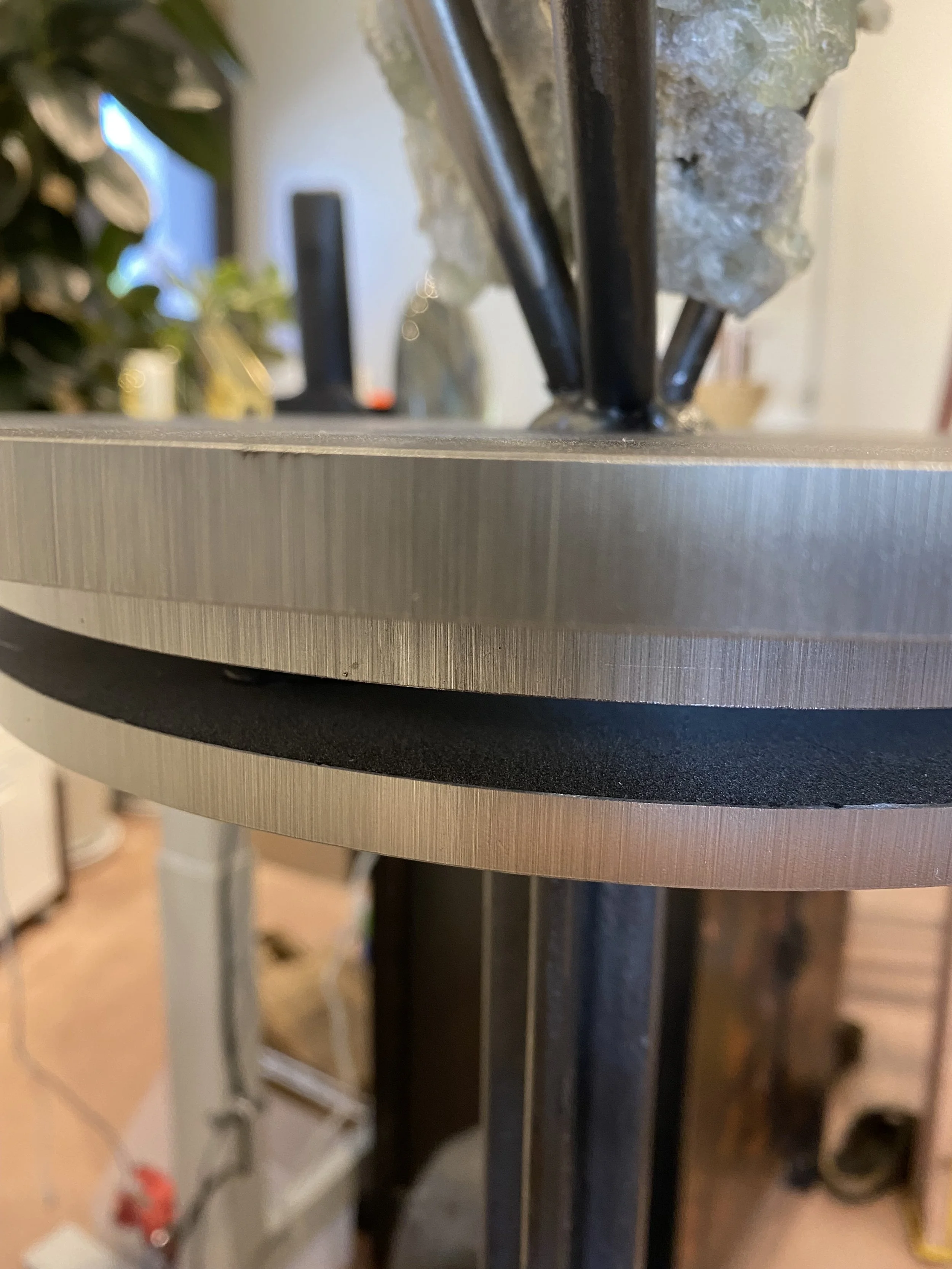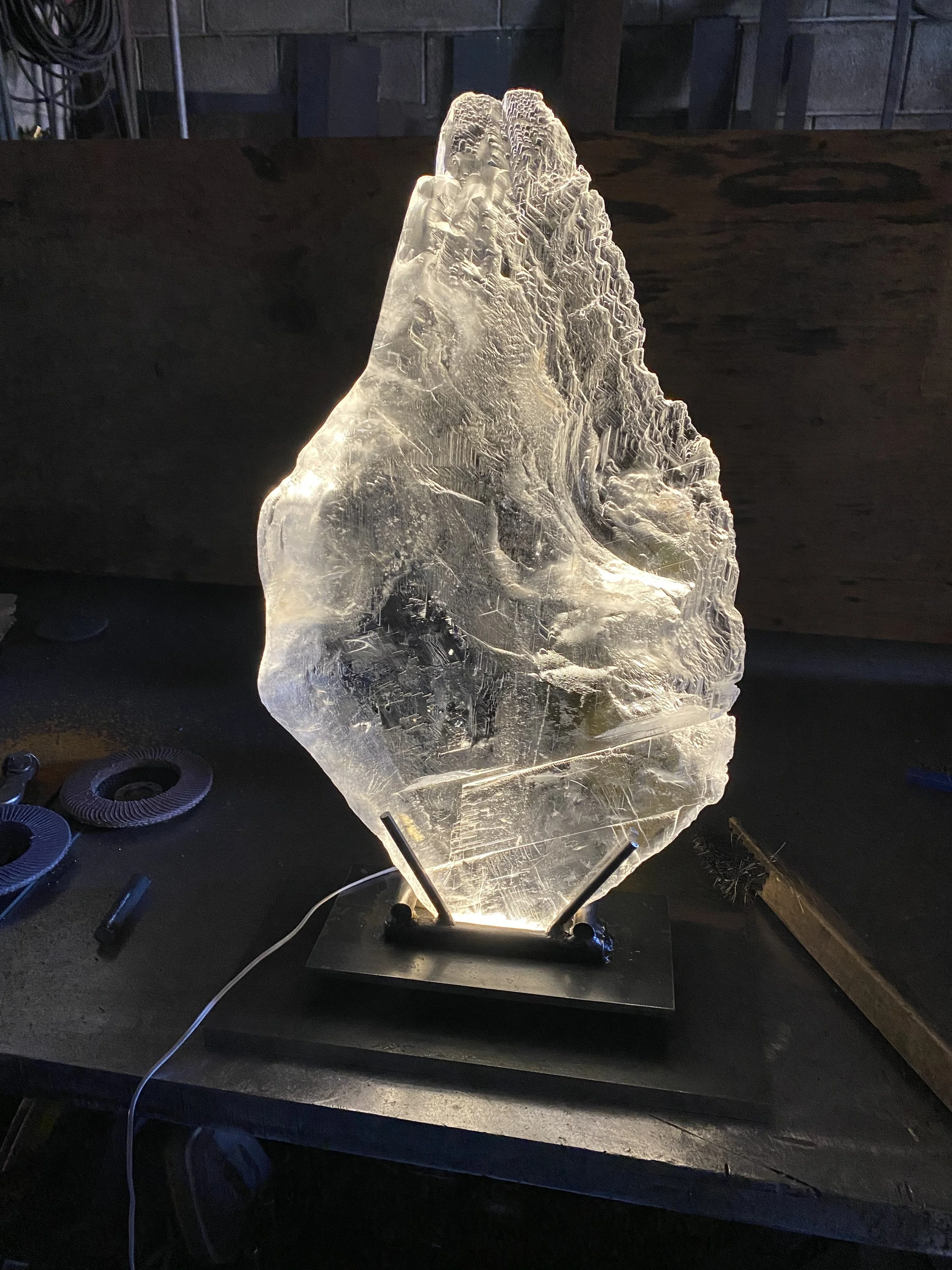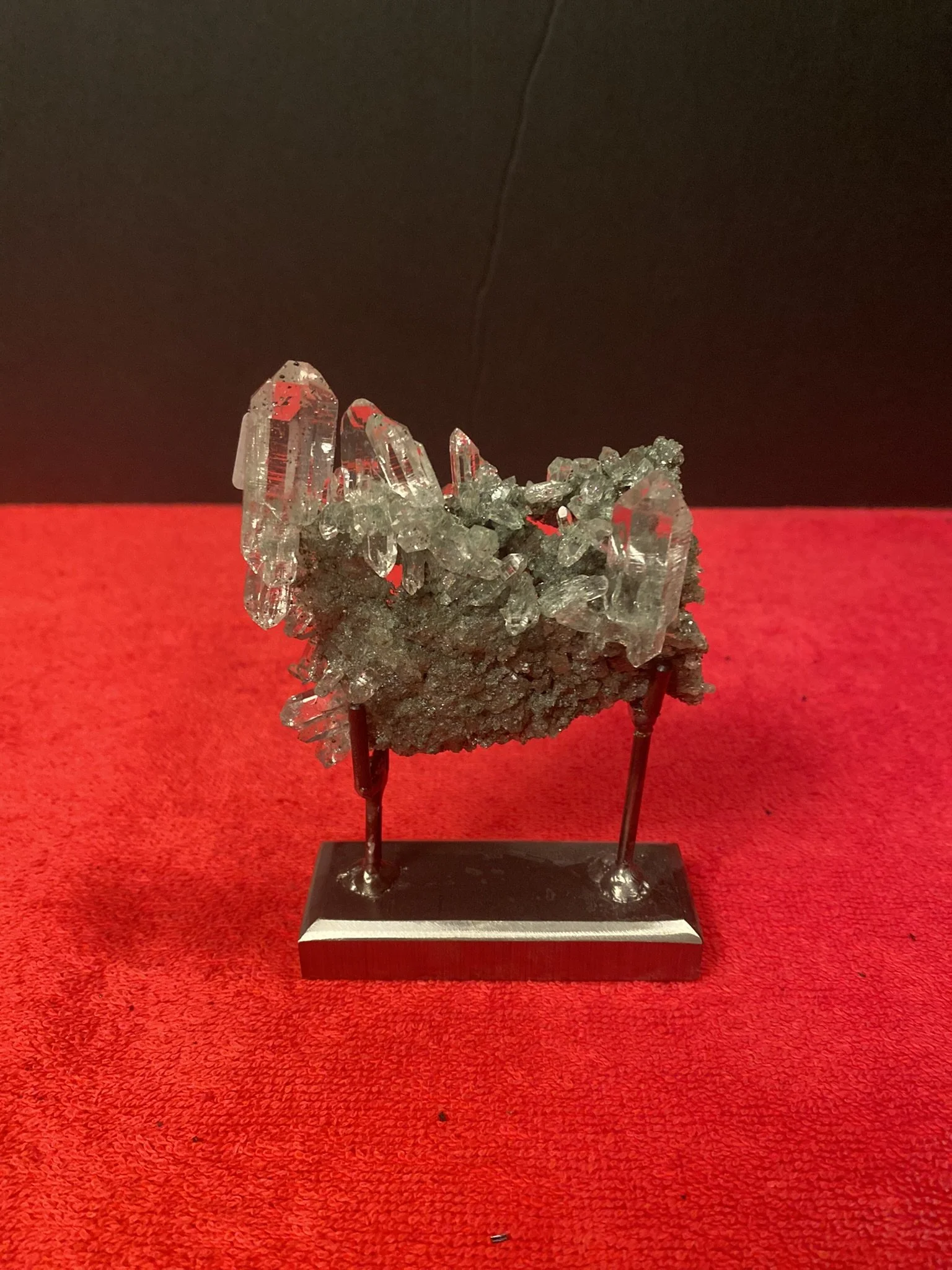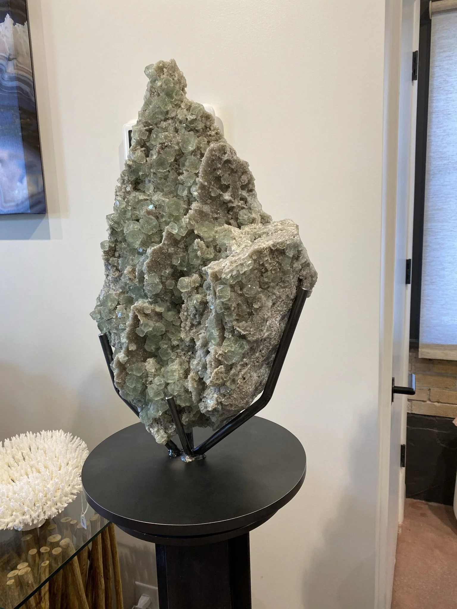I specialize in custom designing stands. Whether it is a crystal, gemstone, collector item, or a treasure brought back from your travels, I can craft a stand that will enhance the beauty of the piece, turning it into a work of art. Stands come floor, table or wall mounted, can swivel if need be, and are designed to meet your specifications. Custom lighting can be integrated into the stand to further showcase the item.
